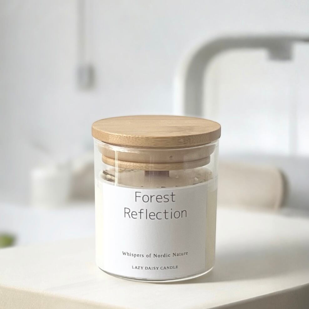 静かな森の中、光がそっと葉を透かし、空気がやわらかく動く。 その穏やかな時間を、この「Forest Reflection」キャンドルにそっと映しました。