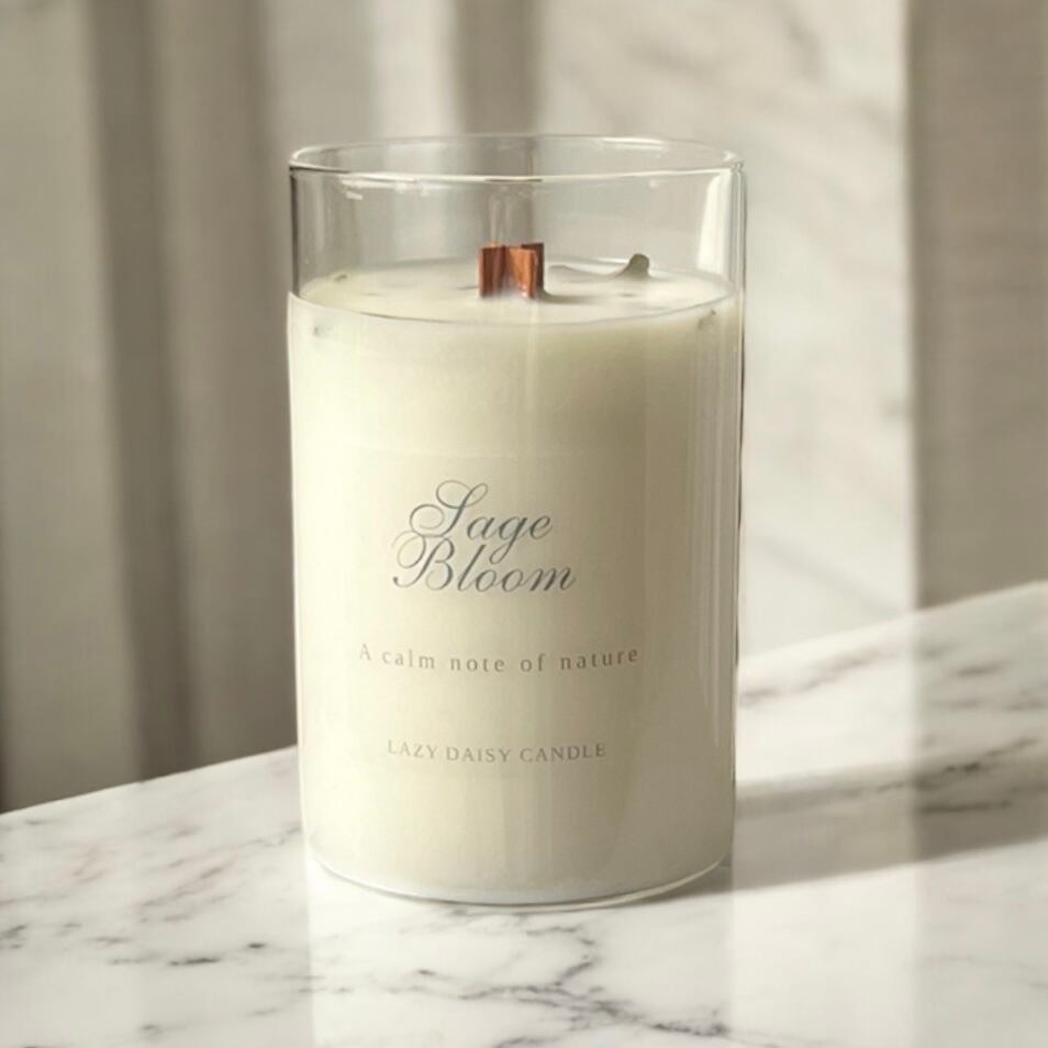 深呼吸したくなるような透明感あるセージの香りを、小さな焚き火のように静かにゆらぐウッドウィックに託しました。